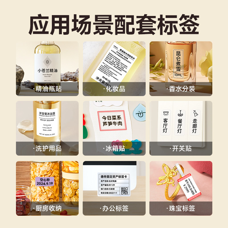 德佟DT5150/350精油瓶标签纸复方香水美妆小样分装瓶身瓶盖不干胶贴纸防水防油二维码透明自贴膜标签打印纸