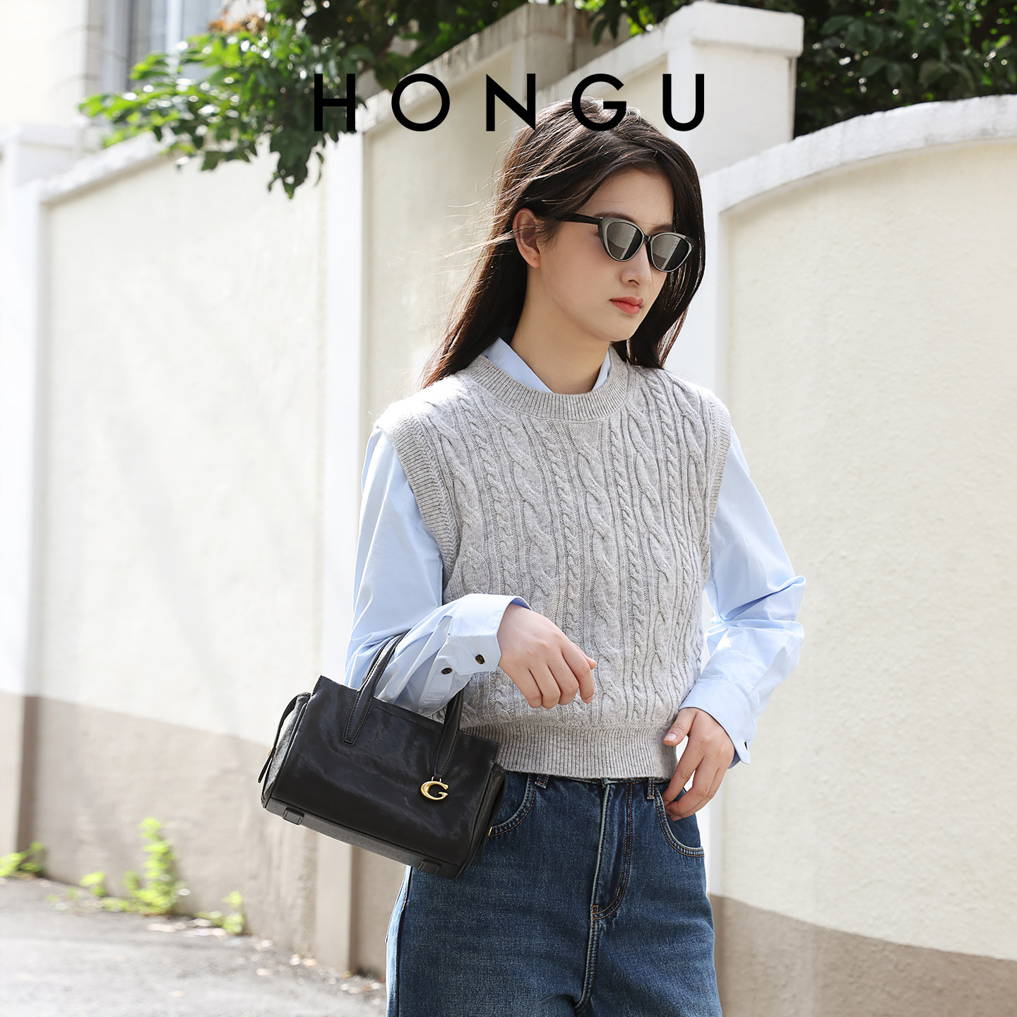 红谷包包2025新款植鞣牛皮单肩手提包真皮通勤托特包斜挎女包小包