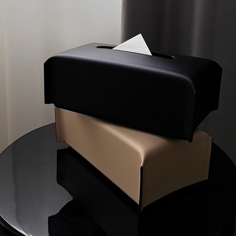 原创马鞍皮车载纸巾盒奶油风高档餐巾纸抽盒扶手箱椅背挂式抽纸套