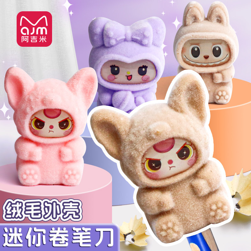 拉布布创意卷笔刀小学生专用高颜值小型便捷迷你削笔刀单孔塑料转笔刀小学生用儿童卡通库米米桌面摆件公仔