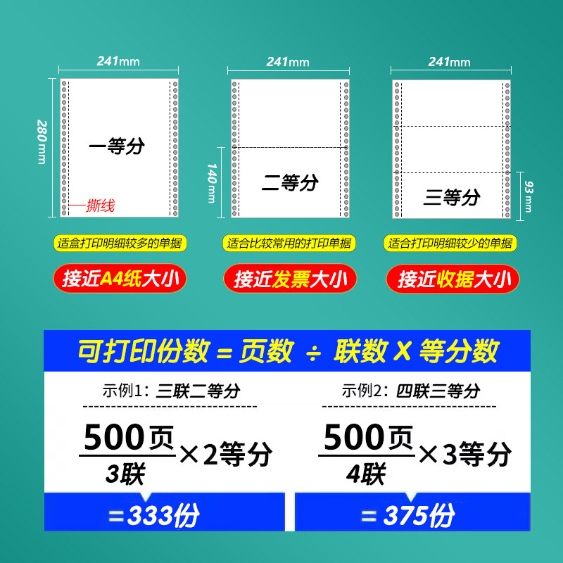 针式电脑打印纸1000页三联二等分二联三等分一联两联3联三联单四联4联五联发票清单纸发货单送货单241