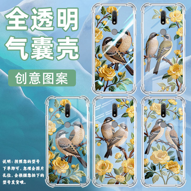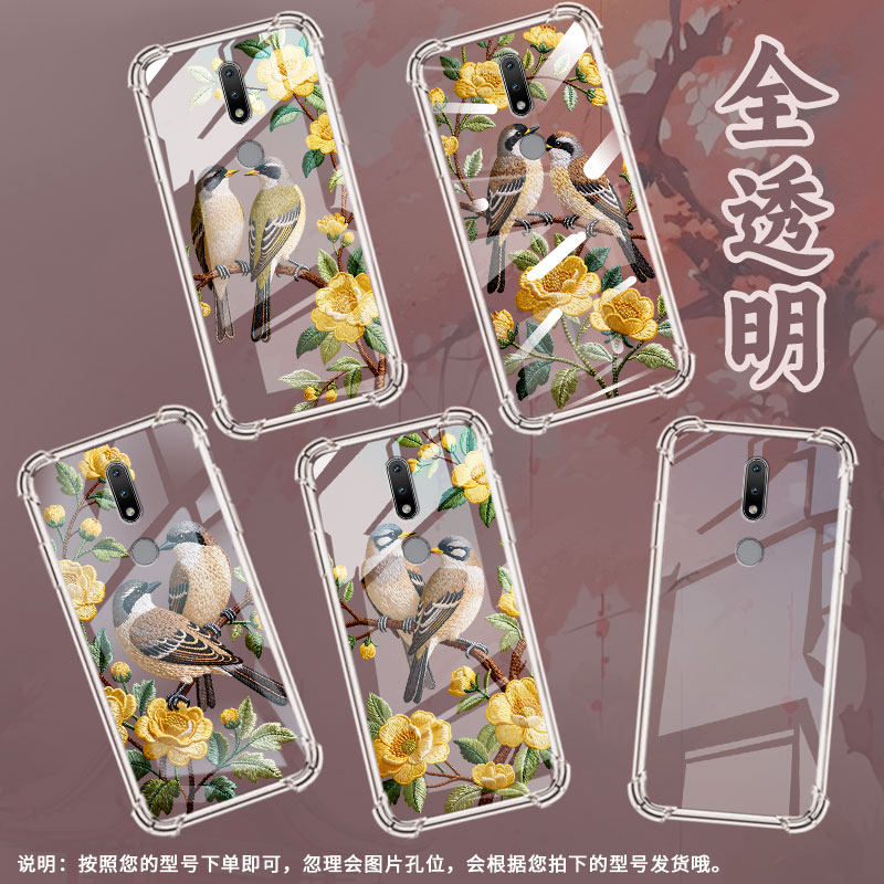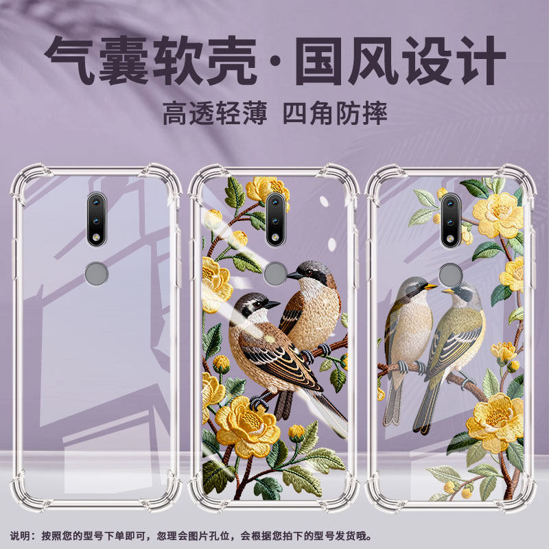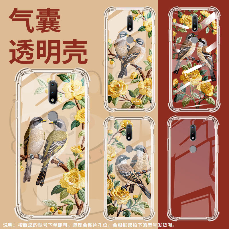 适用诺基亚7.2气囊壳刺绣花鸟诺基亚2.4中国风Nokia1.4全包边诺基亚5.3手机壳TA-1229四角防摔硅胶保护套
