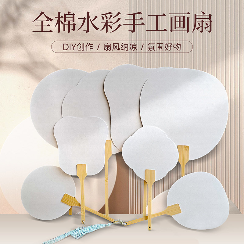 遵爵水彩纸画扇全棉640g双面空白中粗细纹棉浆水彩纸团扇DIY手工创作水粉油画素描竹杆扇子海棠芭蕉美人扇子