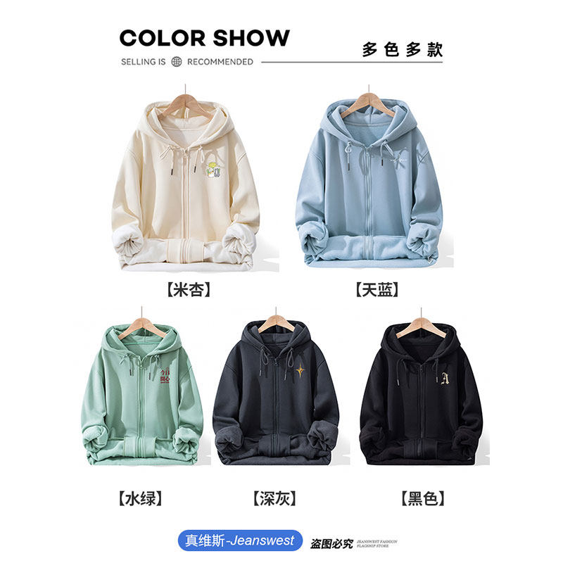 真维斯加绒卫衣男款秋冬季潮牌摇粒绒上衣加厚青少年开衫连帽外套