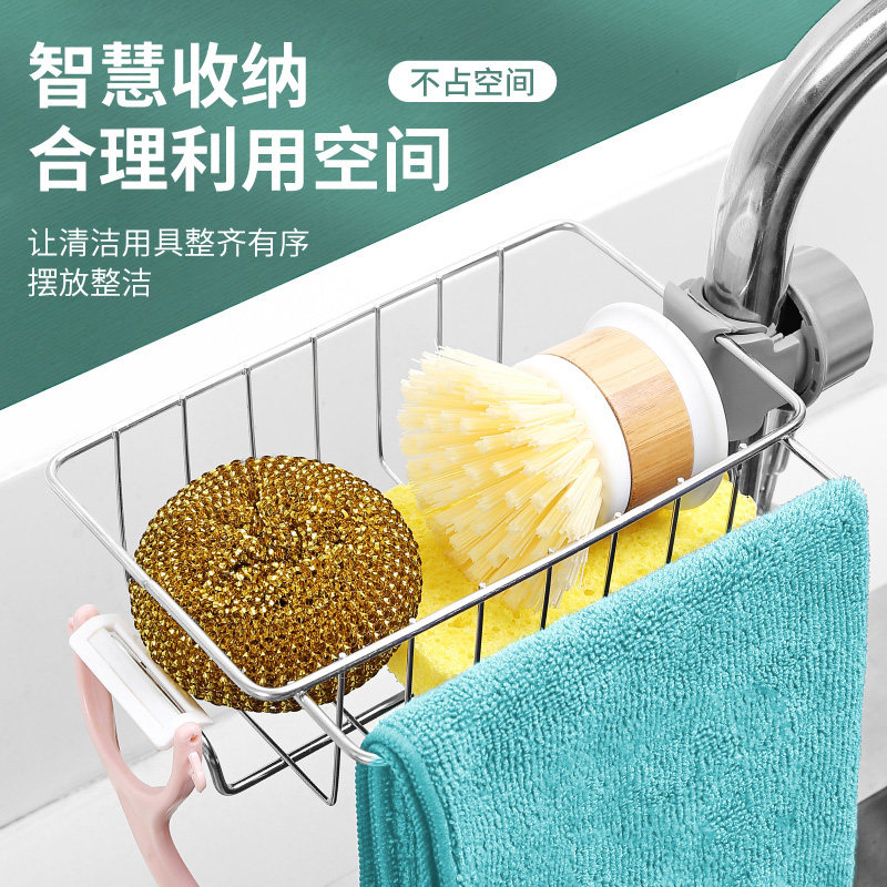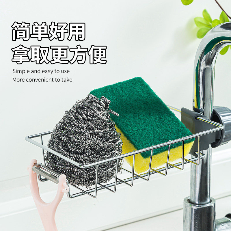 水龙头置物架沥水架厨房龙头挂毛巾架抹布架水槽免打孔收纳不绣钢