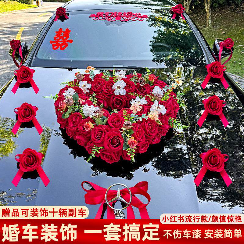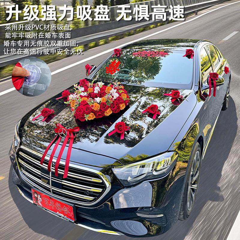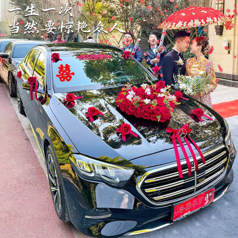 婚车装饰大喜字静电贴车头花结婚车队迎亲专用拉花小囍字车贴全套