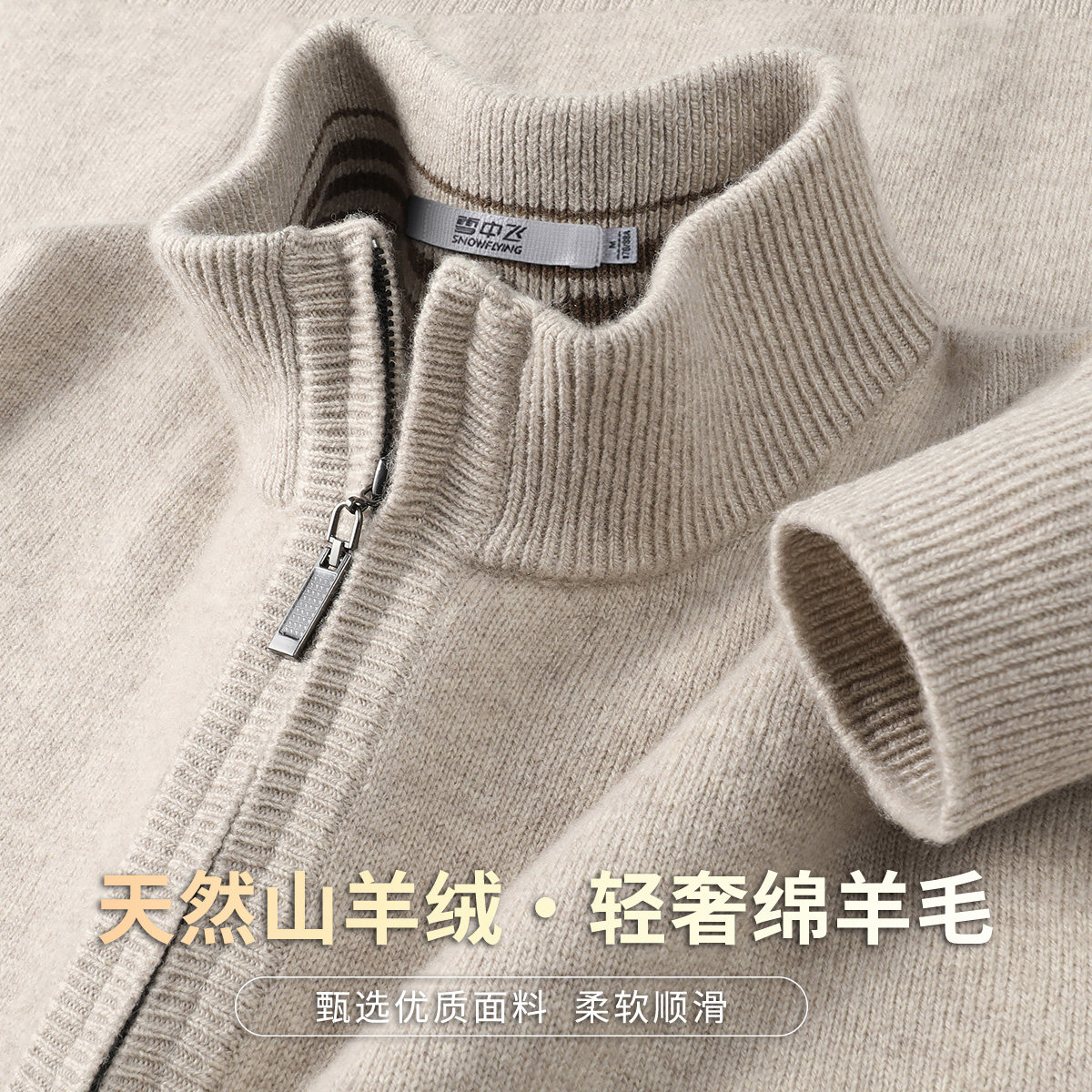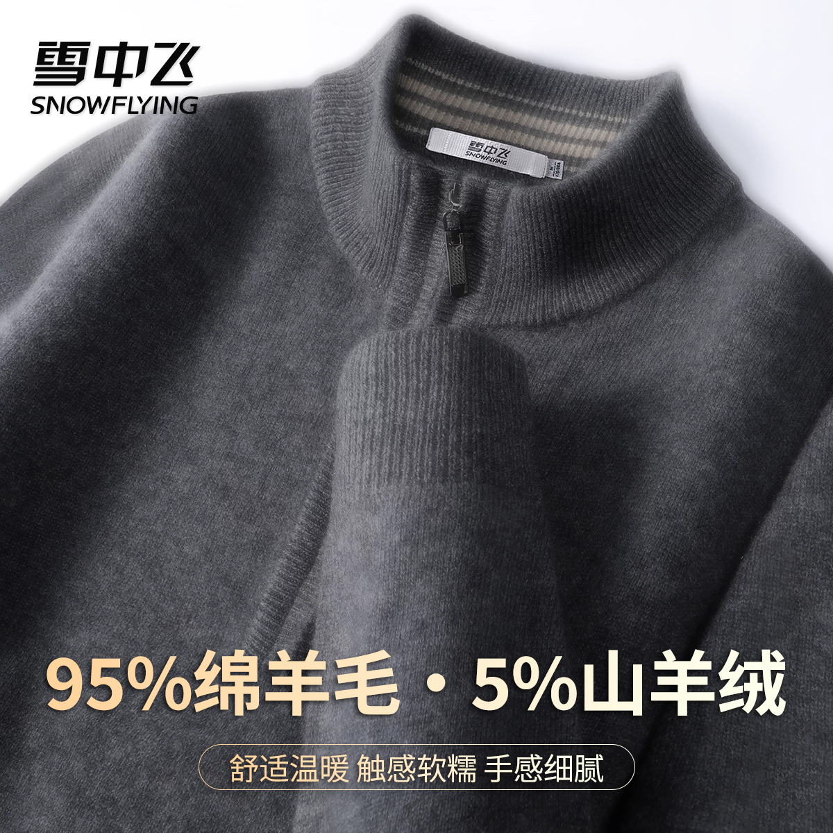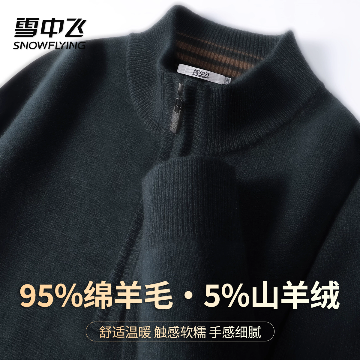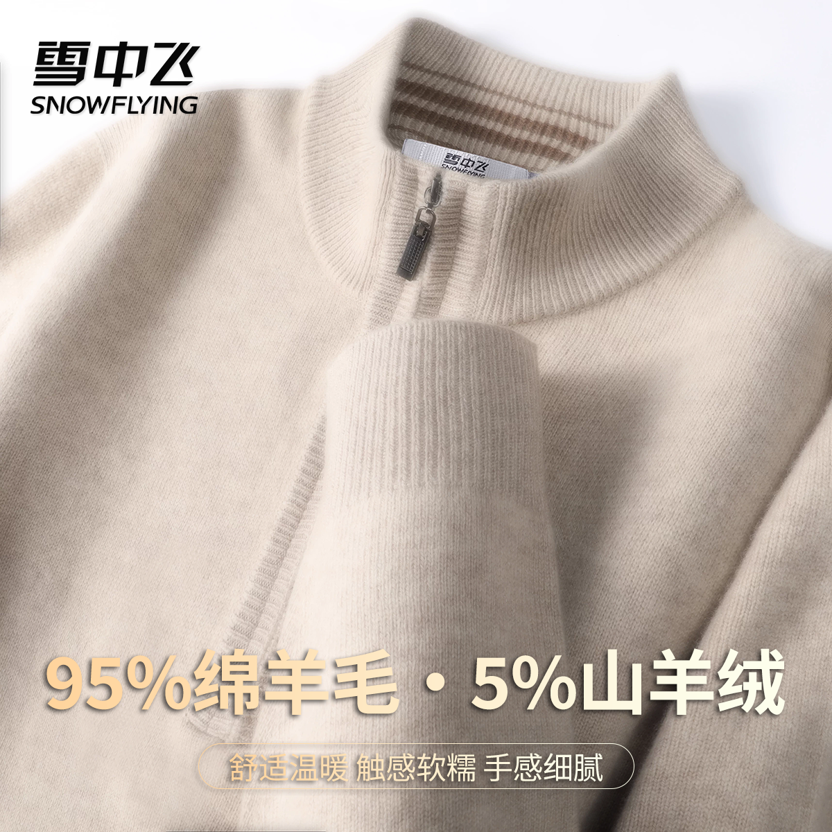 雪中飞【95%绵羊毛】半拉链高领毛衣男舒适温暖休闲高级感针织衫W