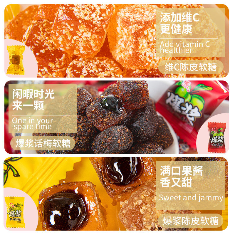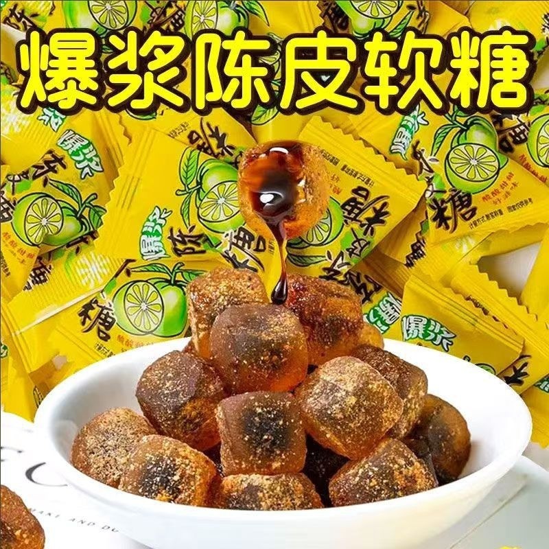 爆浆夹心陈皮软糖500g水果味糖果网红酸甜休闲零食喜糖儿童休闲