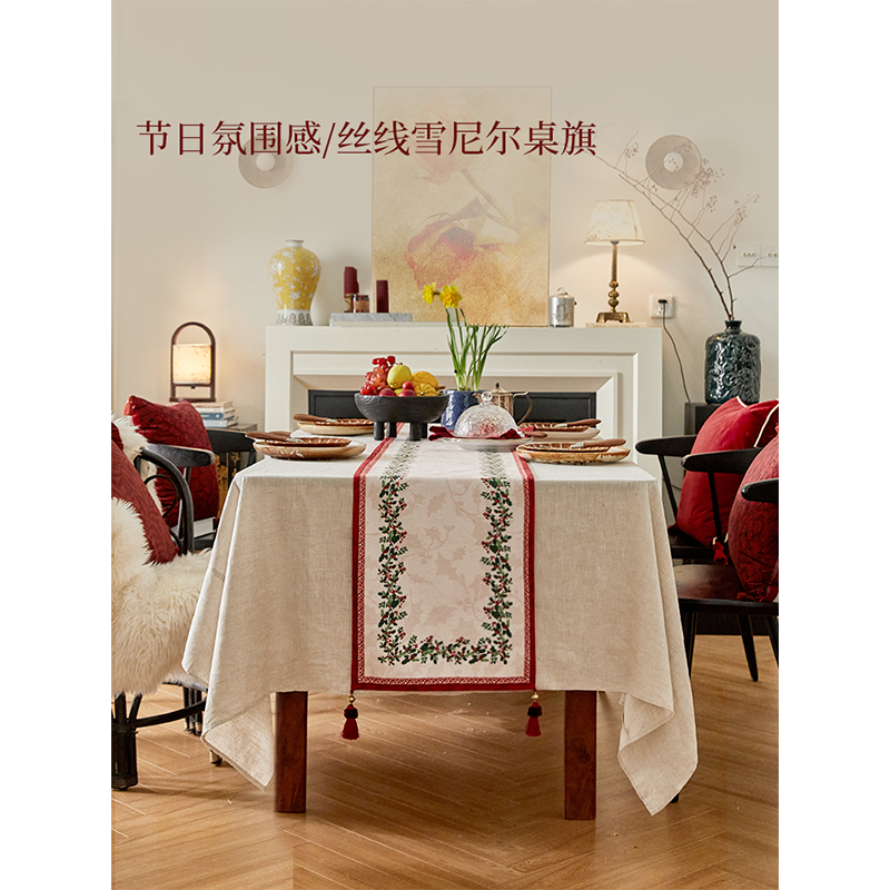 蜡笔派圣诞奇遇桌旗红色节日新婚氛围感轻奢斗柜茶几布茶旗加厚布