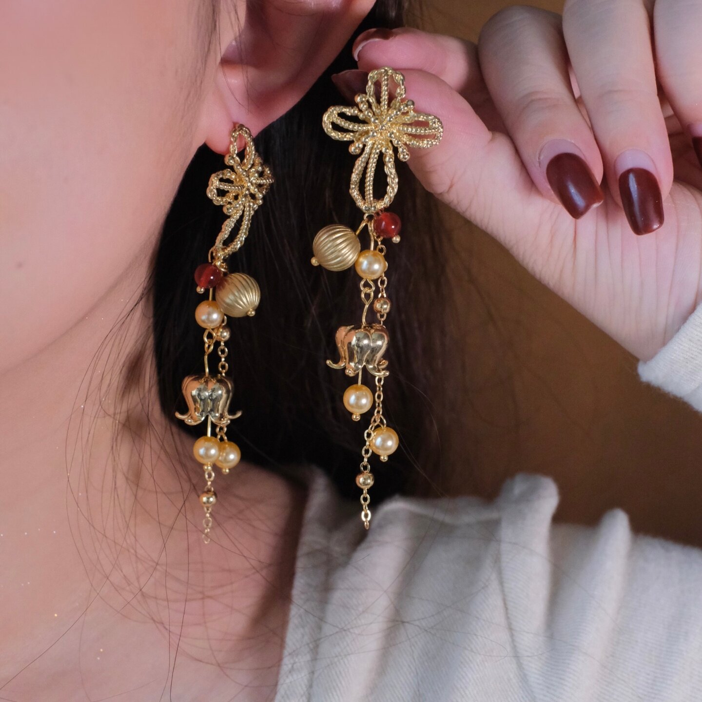 《花舞铃兰》原创小众复古仙气花朵流苏度假长款轻奢耳饰耳钉耳环