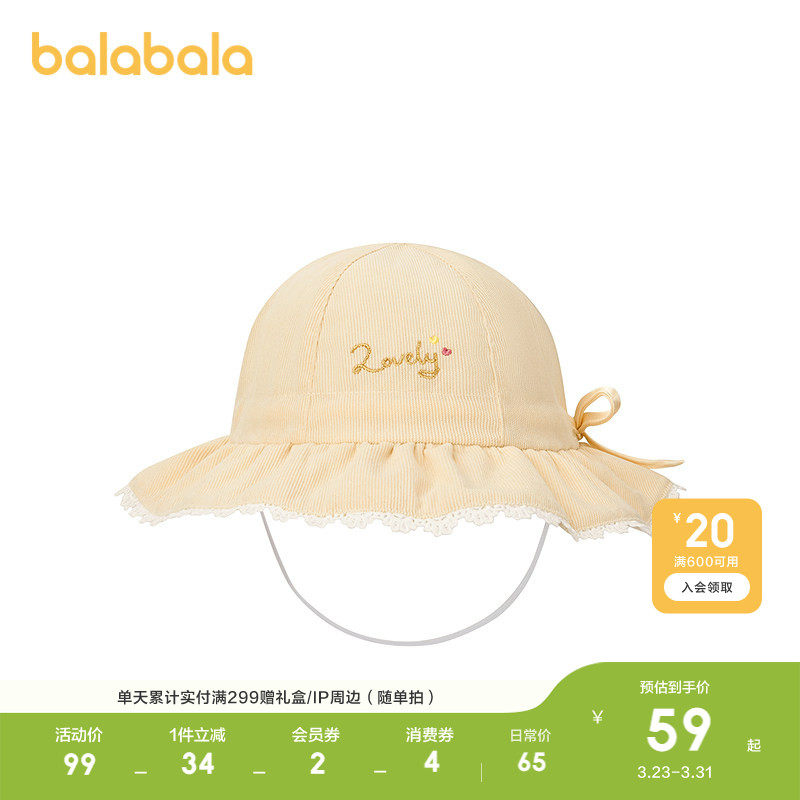 巴拉巴拉婴童帽子女童盆帽宝宝亲肤舒适遮阳舒适户外便携户外潮流