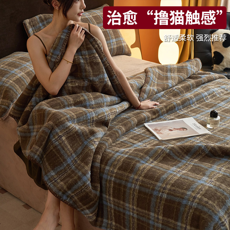 A类牛奶绒毛毯冬季盖毯可机洗单人宿舍毯披肩午睡毯双面绒床单厚