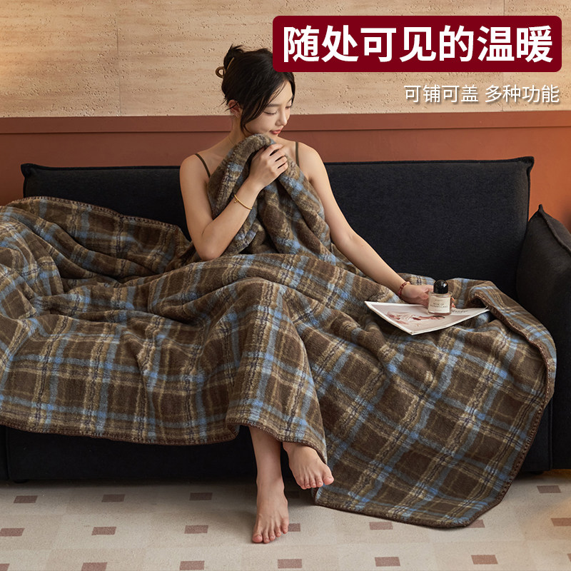 无印良品毛毯牛奶绒毯子美拉德沙发午睡办公室盖毯铺床床单小毯子