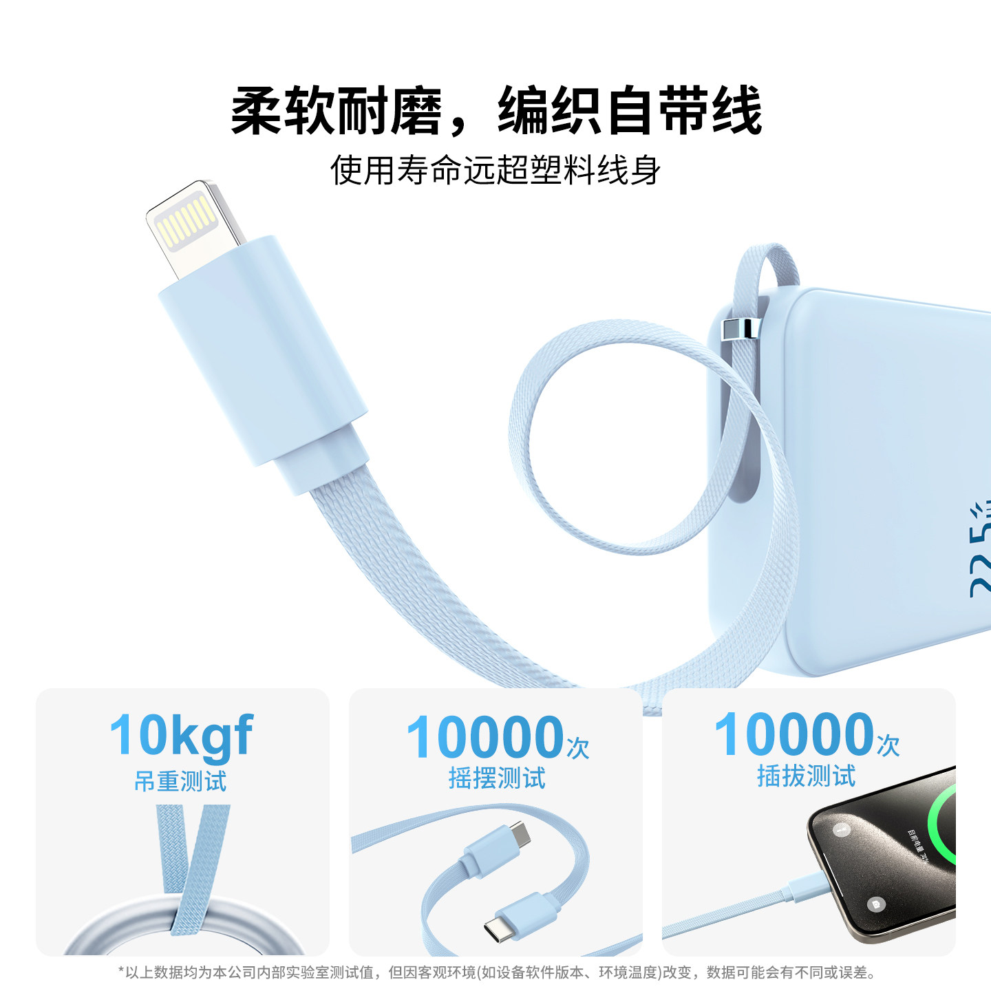 【3C认证充电宝】品胜2025新款充电宝三合一自带插头10000毫安22.5W双线快充20000大容量适用苹果17移动电源