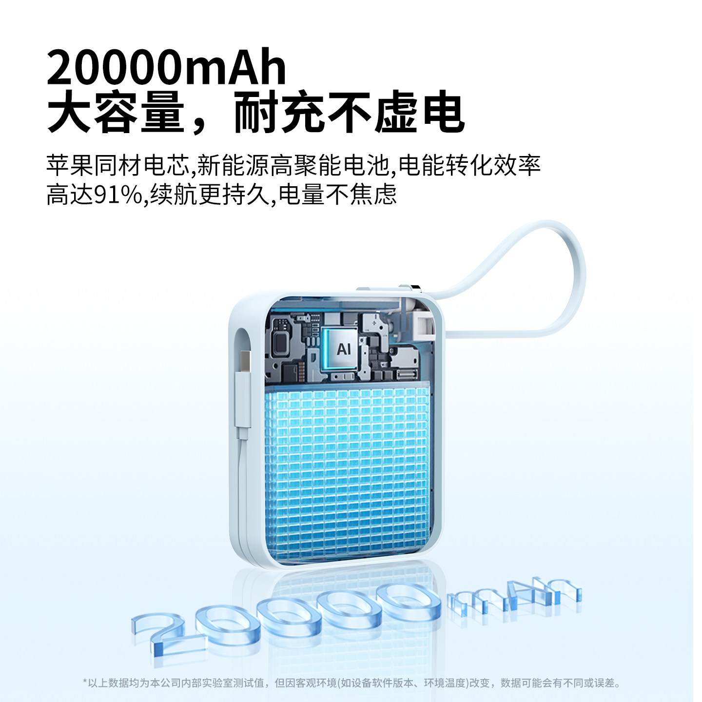 倍思20000毫安充电宝官方旗舰店正品2025新款快充超薄小巧便携自带线大容量移动电源便携适用小米苹果16专用