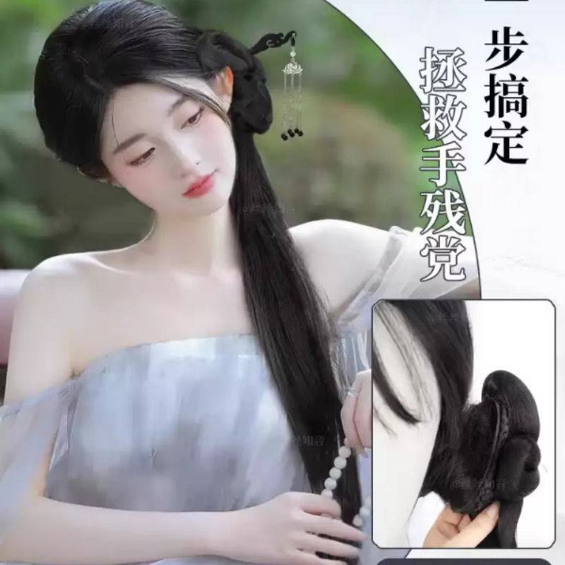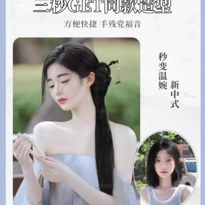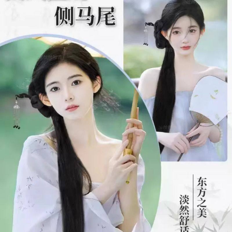 假发辫马尾新中式古风汉服旗袍假发辫子自然仿真发古装盘发侧发型