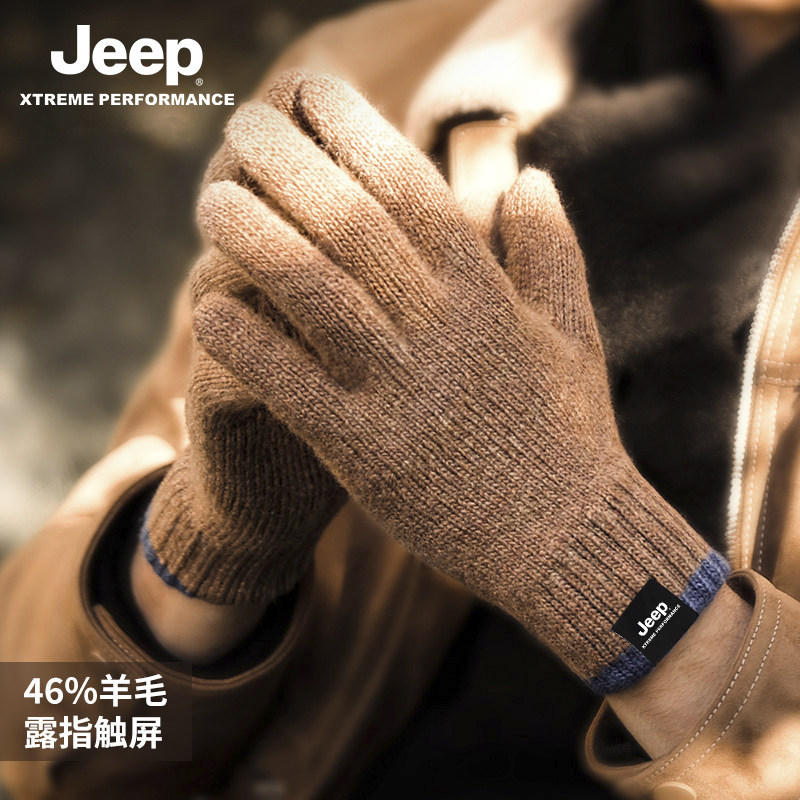 jeep吉普手套男士冬季可触屏半指学生羊毛混纺手套骑行防风保暖男