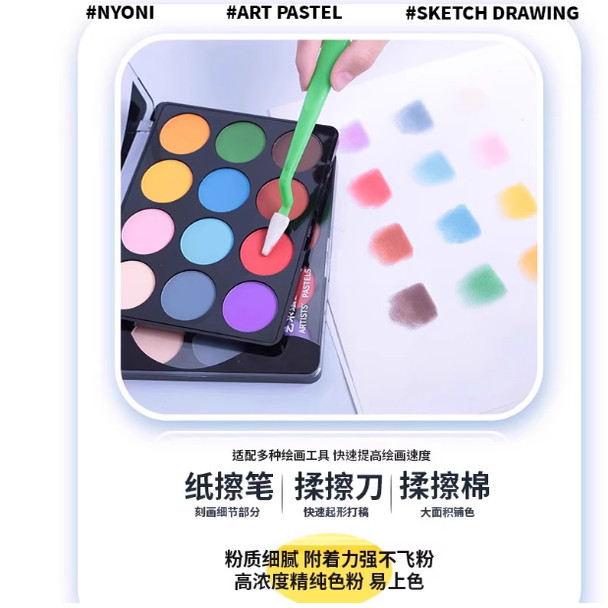 尼奥尼艺术绘画色粉12色炭粉速铺粉美术画画专用素描色粉彩色粉饼