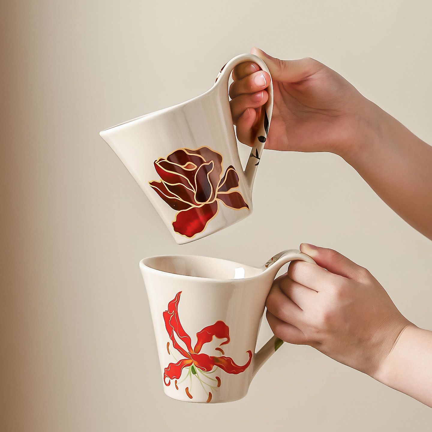 原创小众红苹果咖啡杯简约手绘陶瓷杯复古翻口马克杯水杯情侣礼物