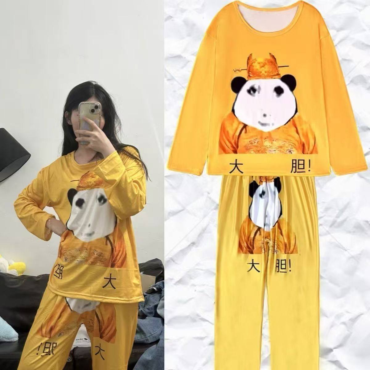大胆龙图睡衣学生男女情侣长袖套装休闲家居服潮流搞笑皇帝龙袍