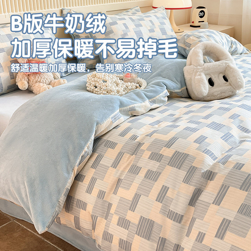 冬季加绒被套单件牛奶绒珊瑚绒宿舍单人单独毛绒被罩1.5米四件套3