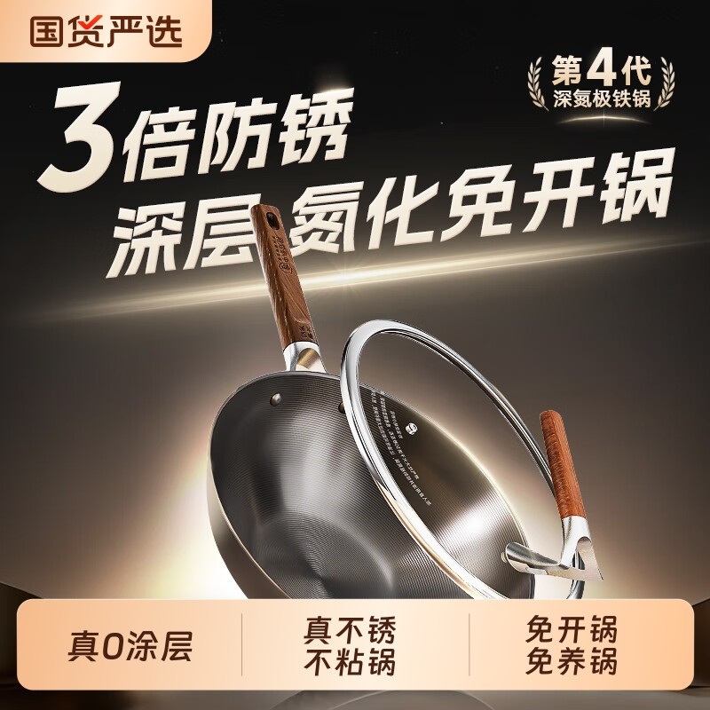 九阳铁锅无涂层炒锅家用炒菜锅不易粘锅电磁炉专用燃气灶旗舰店炊