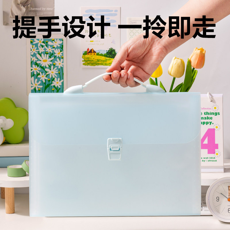 得力风琴包13层小清新手提收纳包科目分类资料夹办公文件包公文包