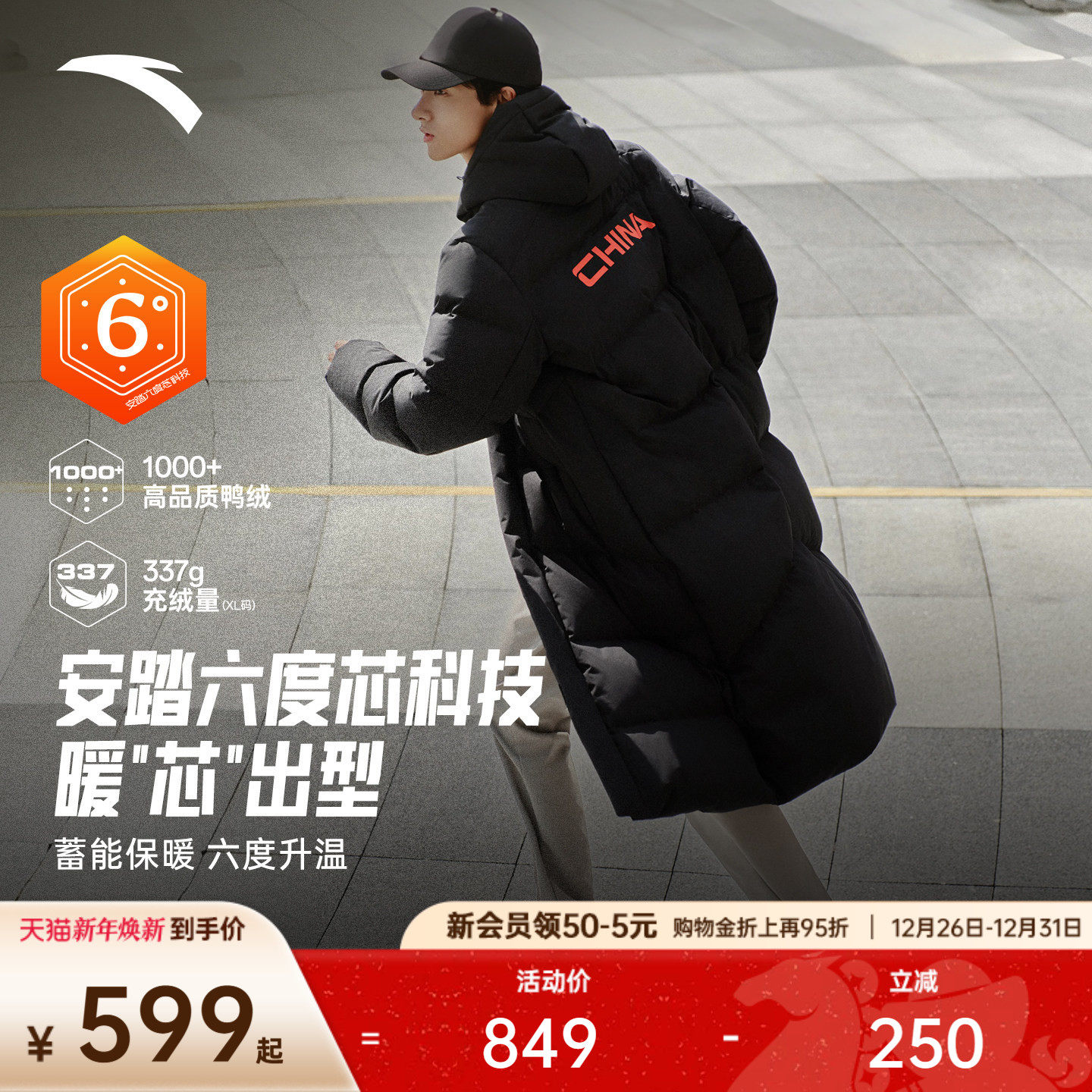 安踏林孝埈羽绒服男士冬季新款过膝长款棉服鸭绒保暖运动外套上衣