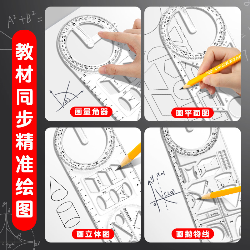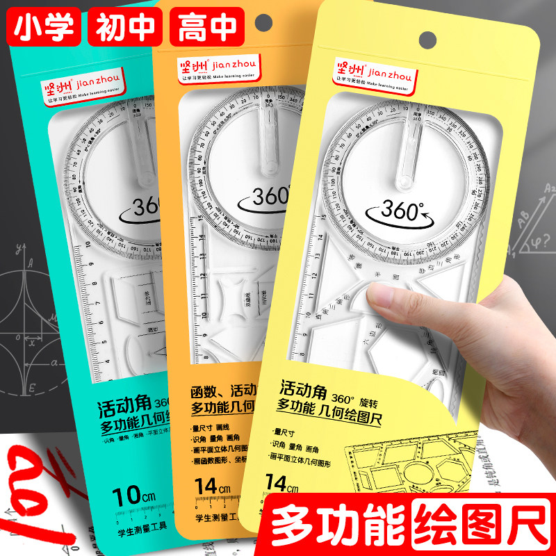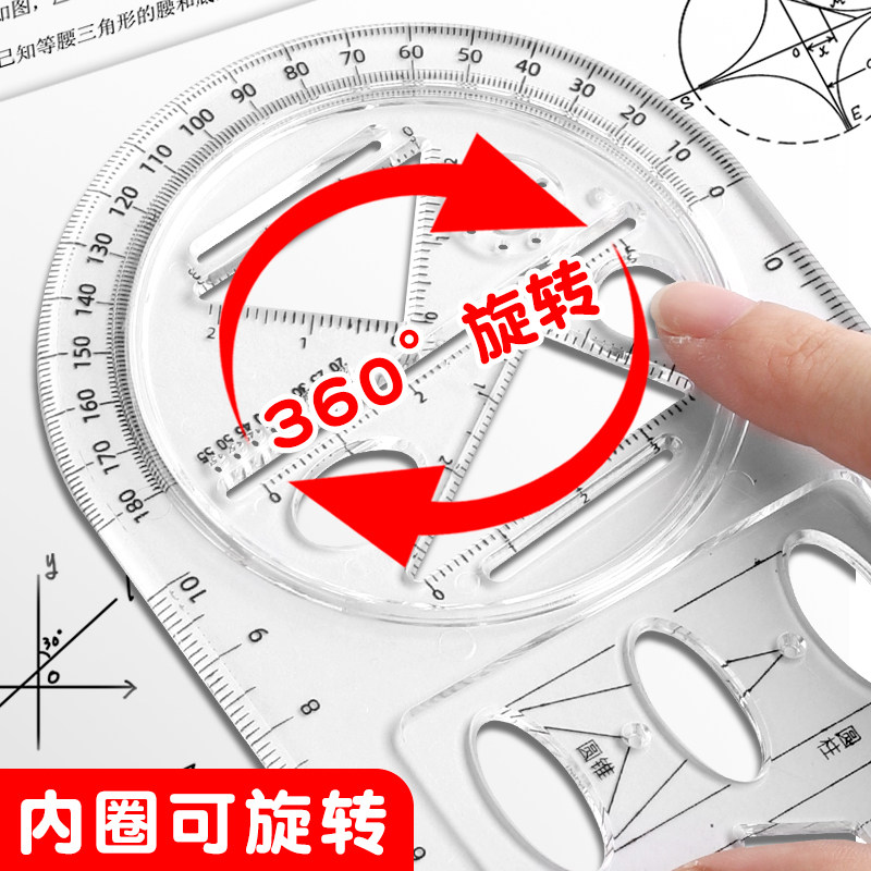 多功能几何绘图尺子学生专用画画神器函数图形尺万能尺活动角工具手抄报模板数学直尺三角尺高考小学生初高中