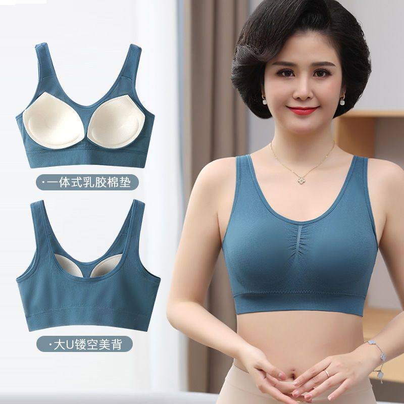 内衣女中老年人妈妈聚拢防下垂背心式运动大码文胸罩一体罩杯固定