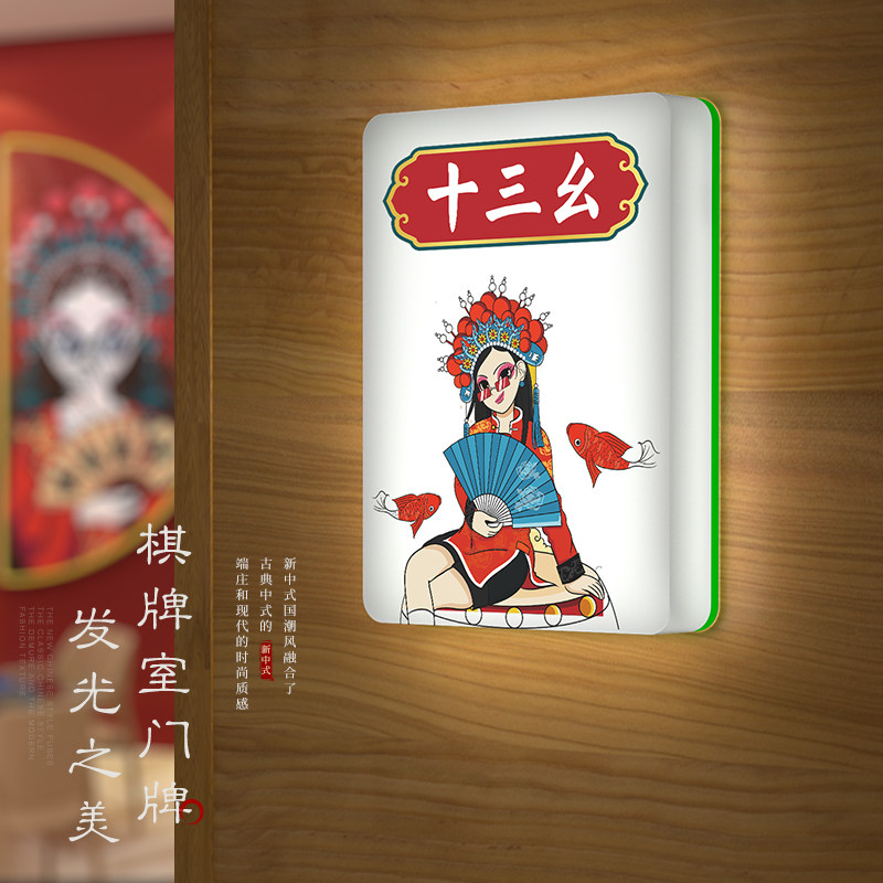 高档棋牌室包厢门牌麻将馆房间号标识牌定制国风棋艺娱乐室灯牌雀房提示牌桌球房餐饮包间指示牌国潮风