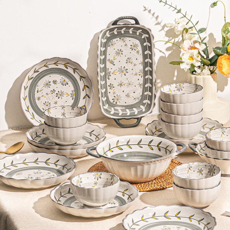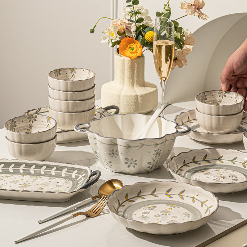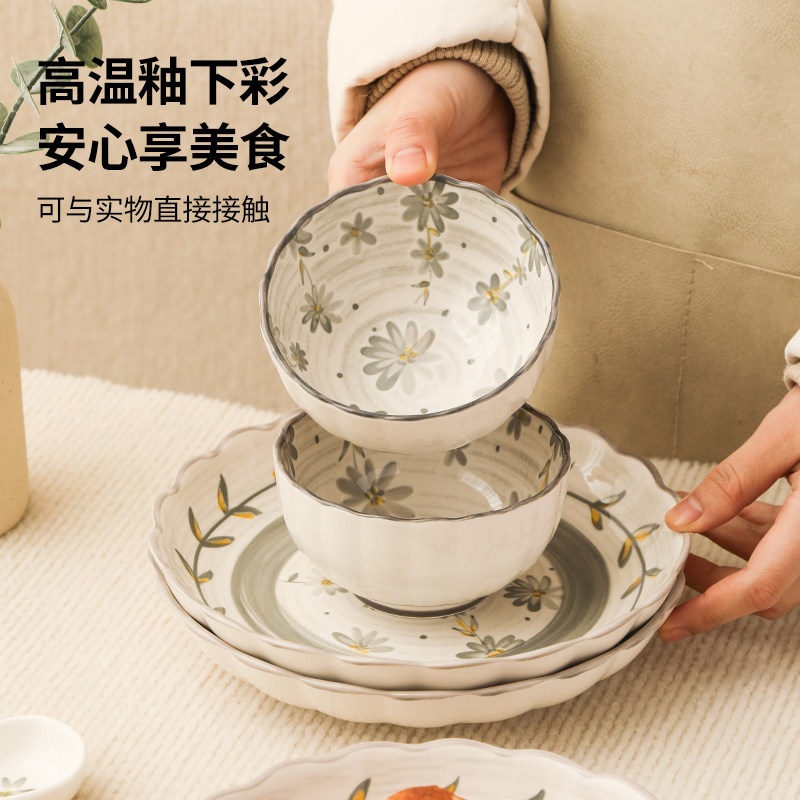 wuxin荷意碗碟套装家用清新餐具2025新款碗盘乔迁新居瓷器筷礼盒