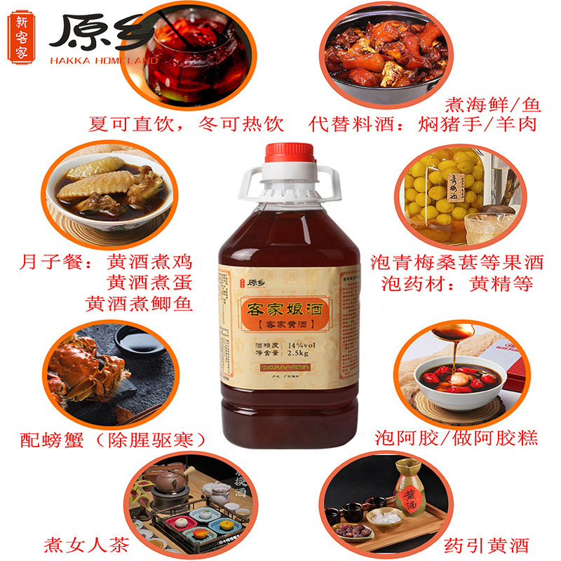 客家黄酒广东梅州正宗娘酒特产糯米酒甜酒可泡阿胶5斤装瓶装酒酿