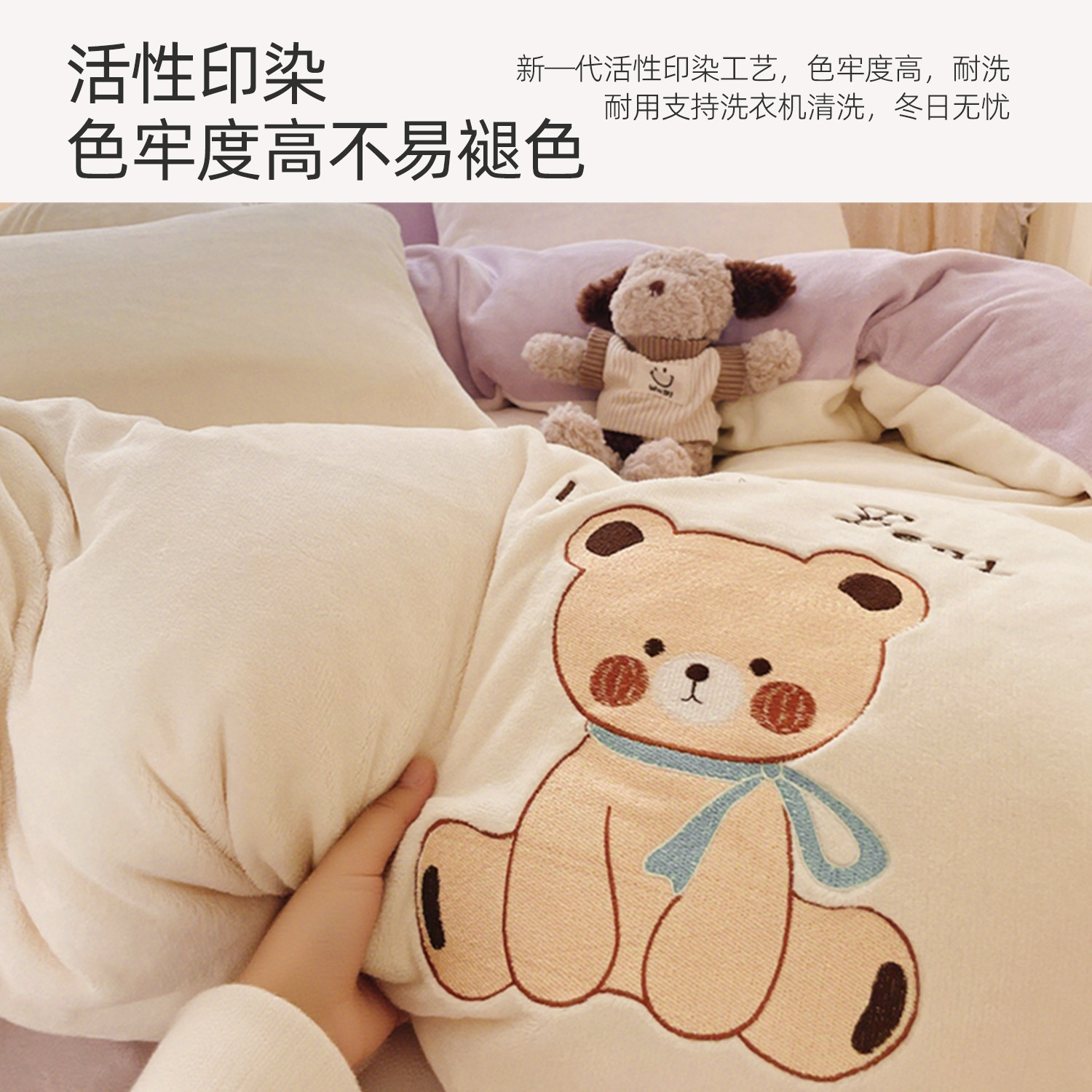 牛奶绒床上四件套加厚保暖套件奶油风床单床笠毛绒秋冬床品被套