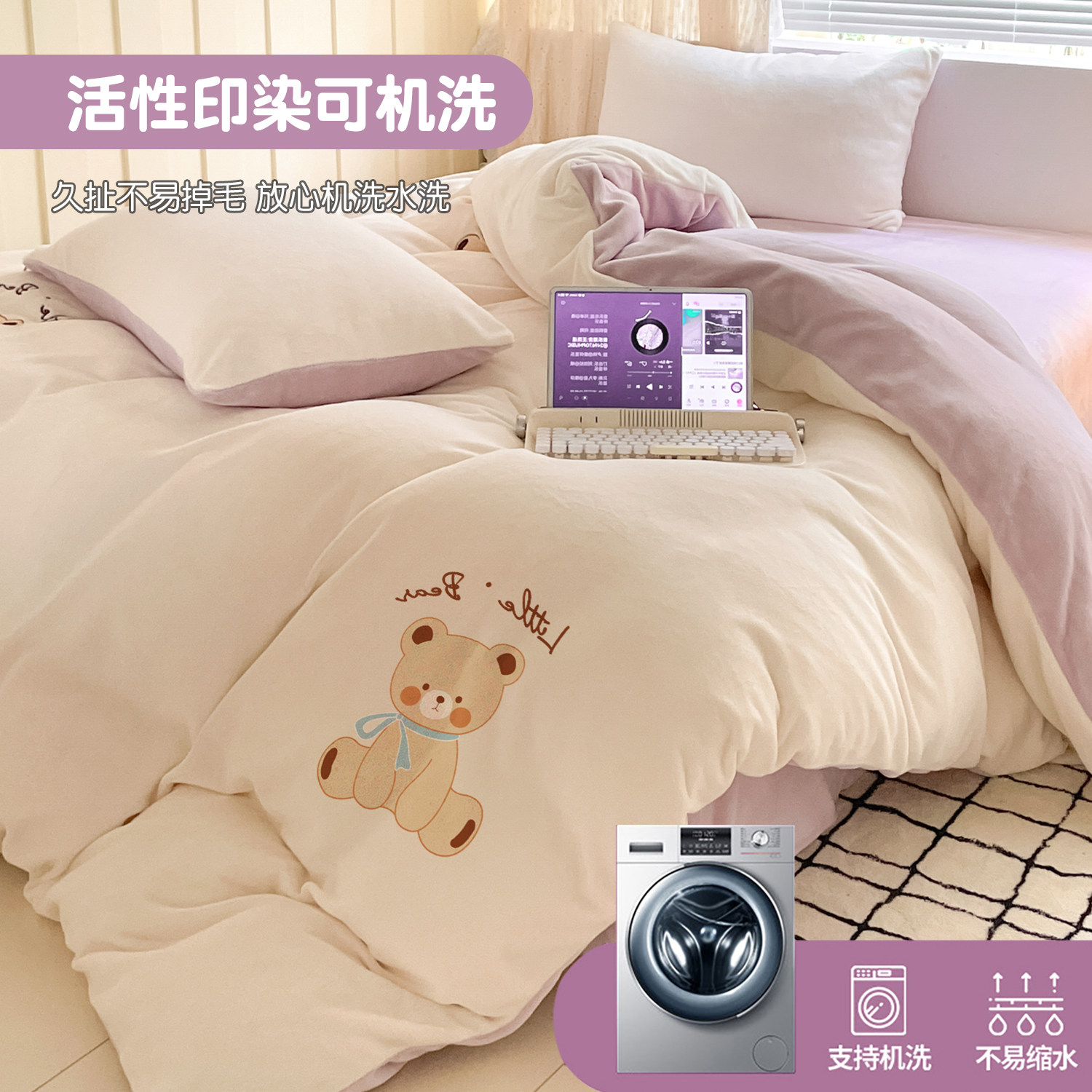 秋冬季加厚四件套牛奶绒被套床单双面加绒被罩床笠学生宿舍三件套