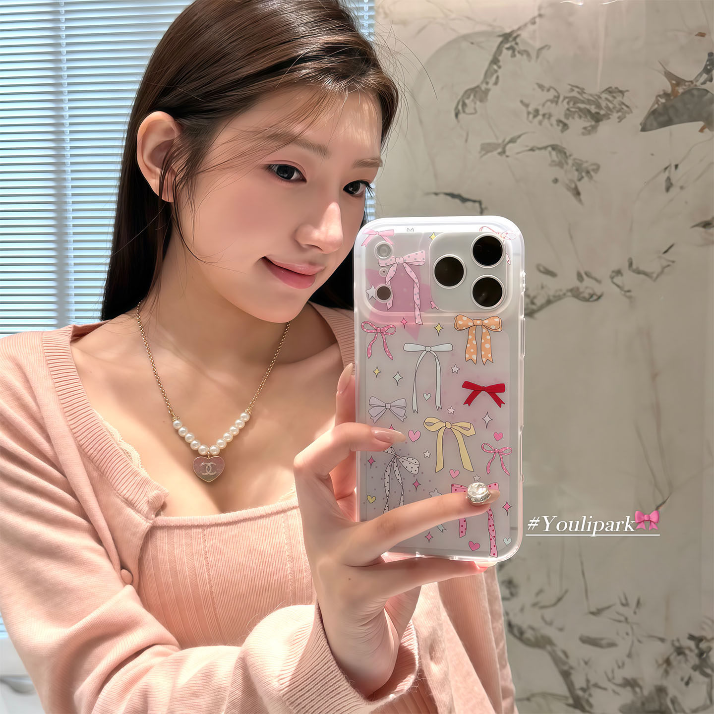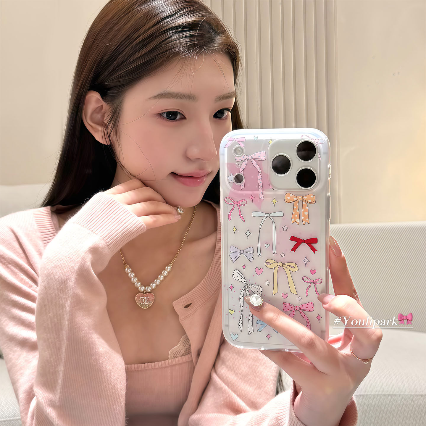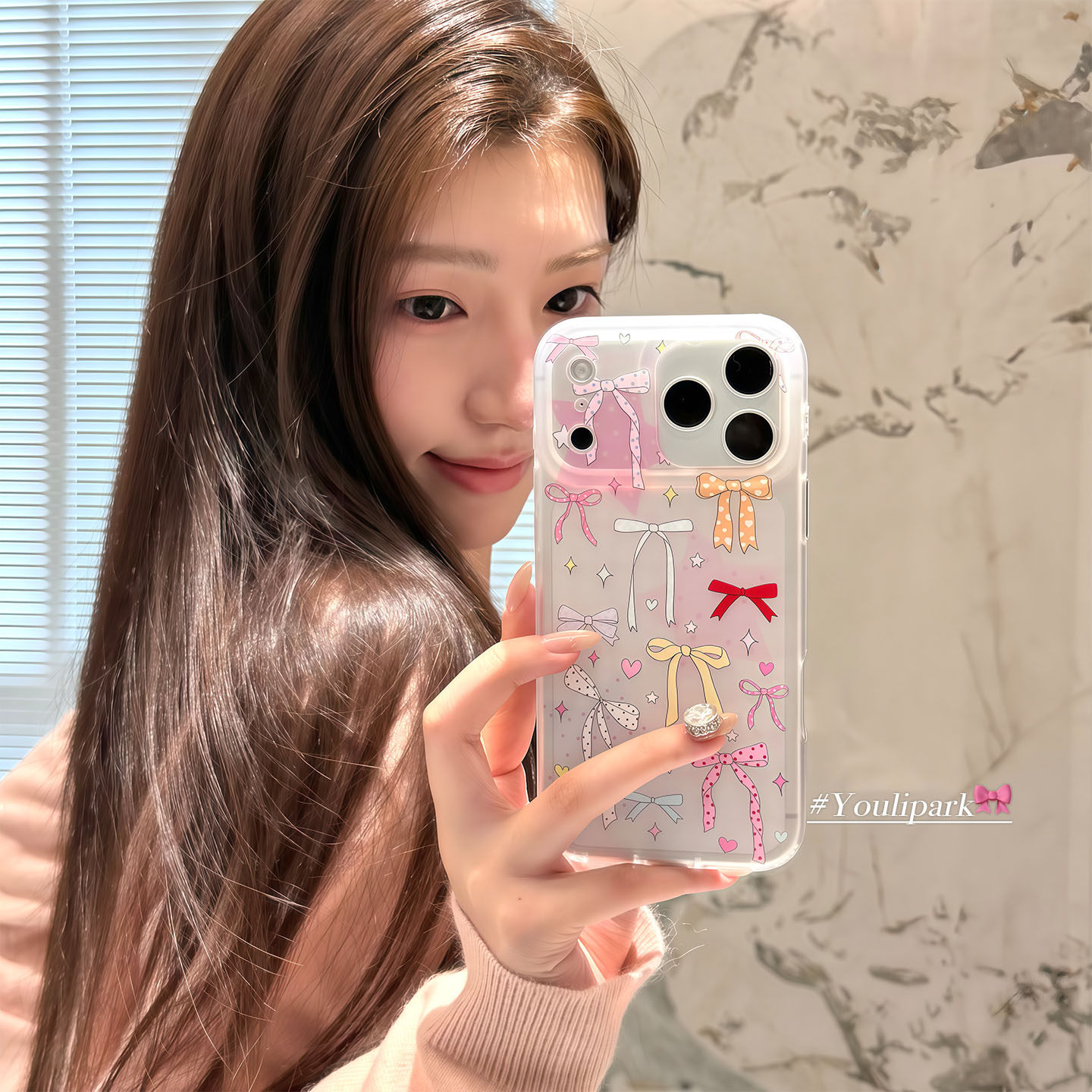 由里公园ins韩系少女甜美彩色星星蝴蝶结17适用17pro苹果17ProMax手机壳iPhone16全包14新款16Promax保护套13