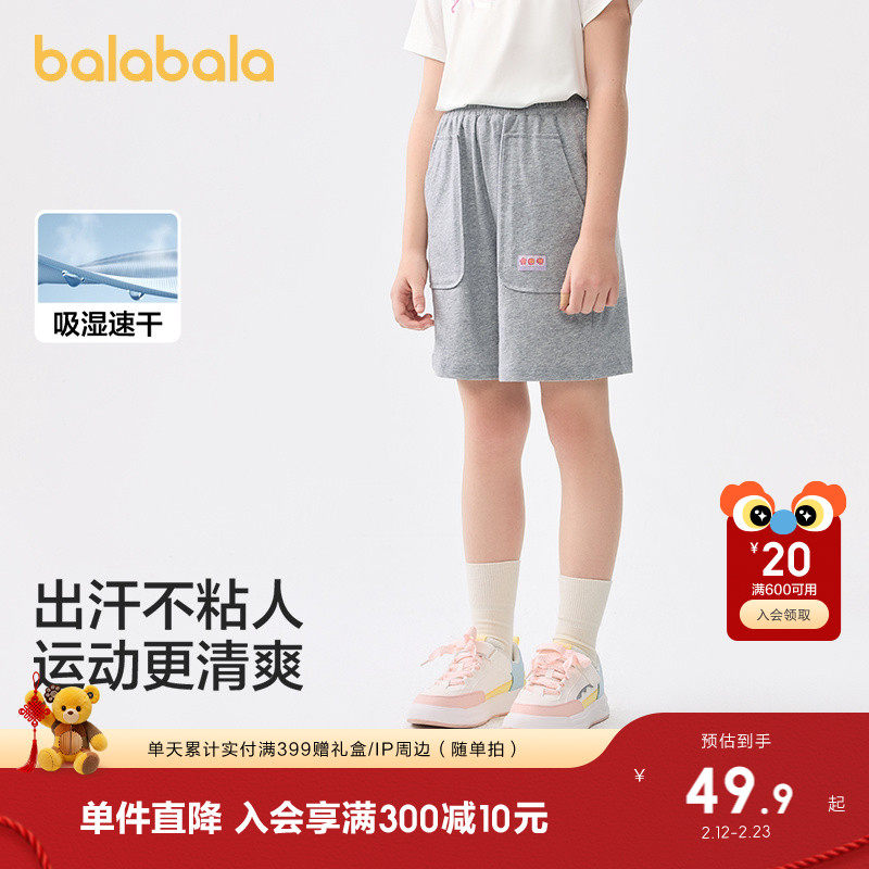 巴拉巴拉童装儿童短裤女童2025夏装新款速干运动裤子时尚中大童潮