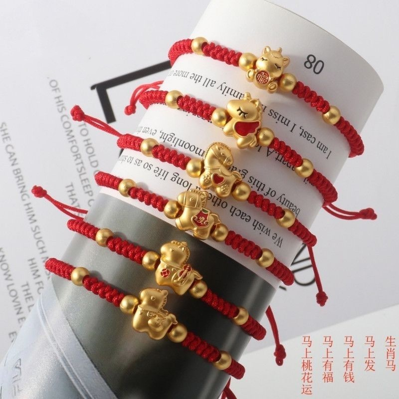 爆款2026马年本命年福马红绳编织手链马上有钱新年手绳过年礼物