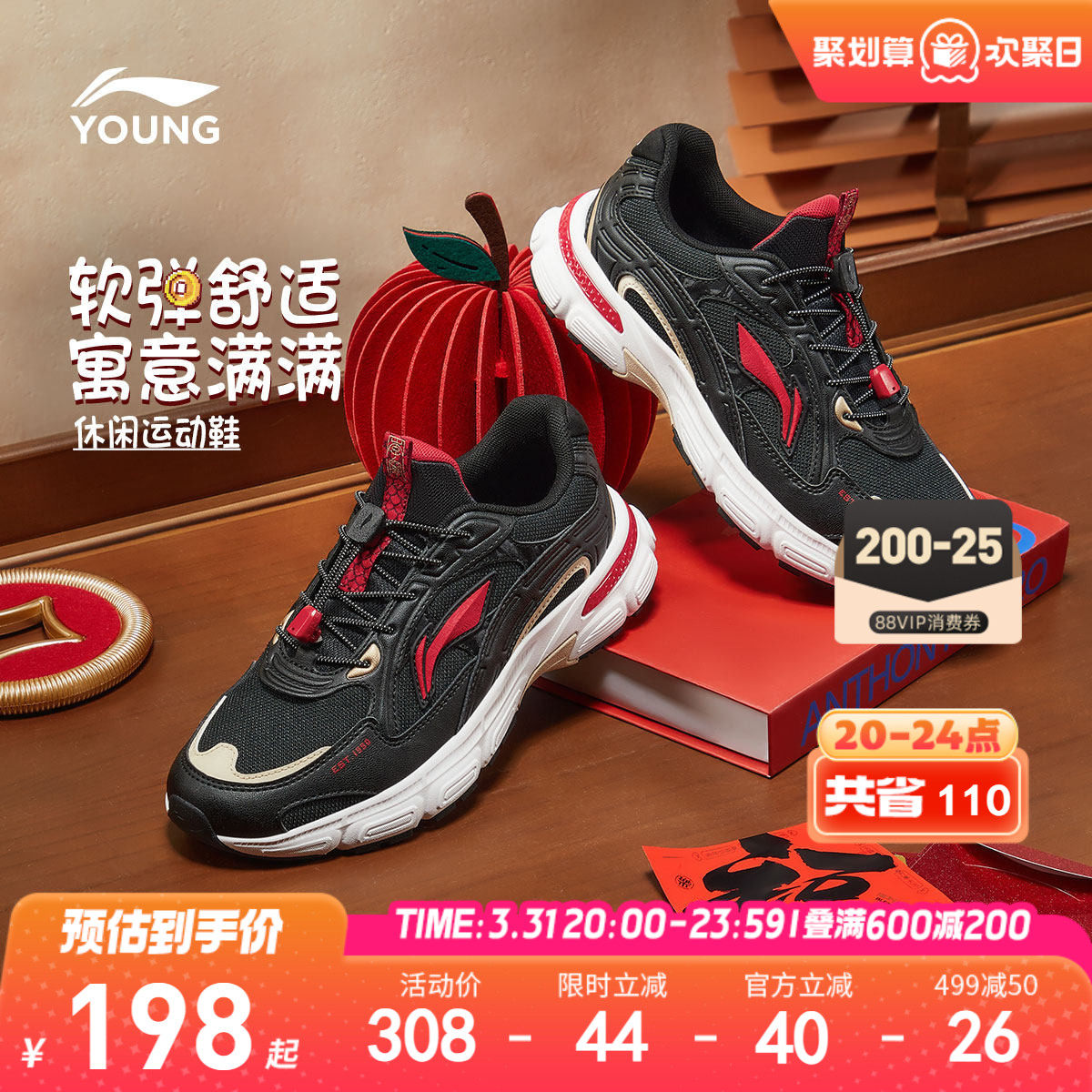 李宁新年2026新款运动鞋男童鞋中大童休闲鞋女童青少年春夏款鞋子