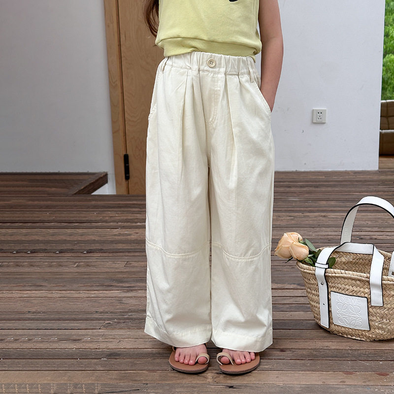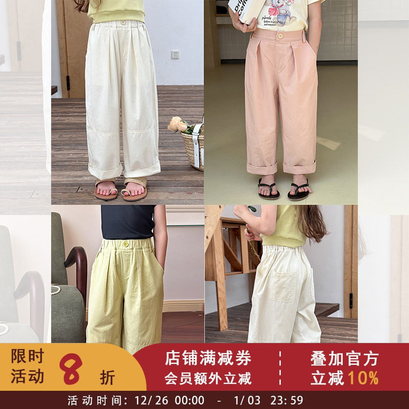 洋气童裤2024夏季新款女童韩版潮范宽松拼接设计直筒裤儿童休闲裤