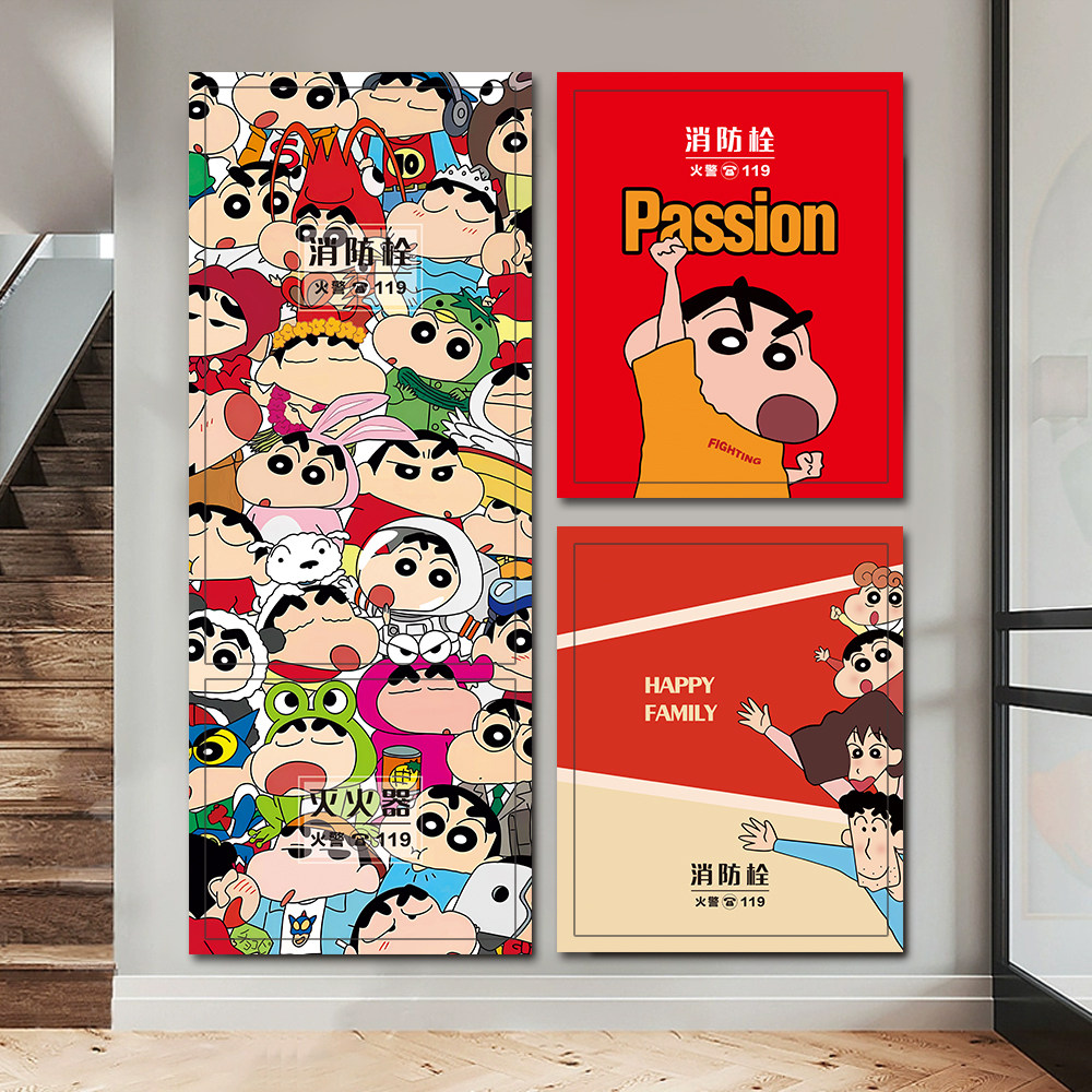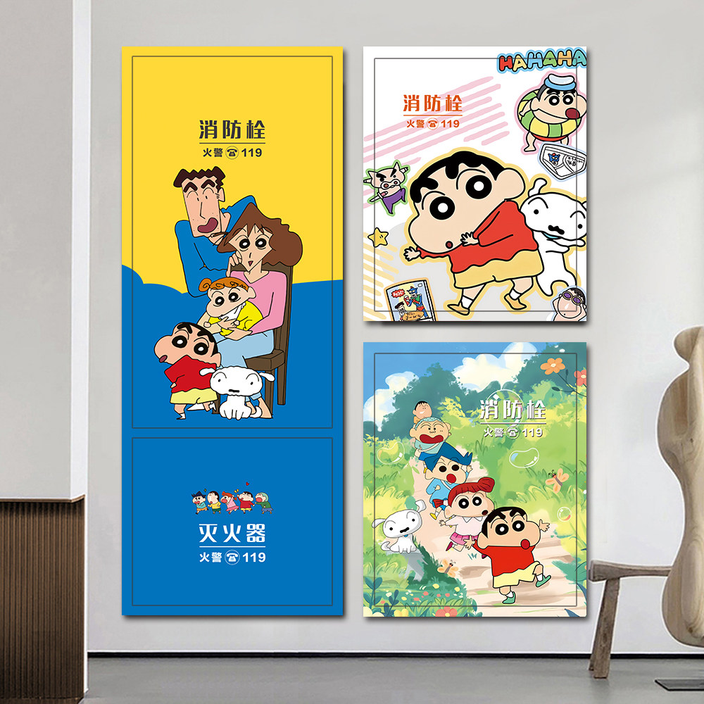 蜡笔小新消防栓装饰遮挡创意水电井门贴纸卡通美化标识防水可移除