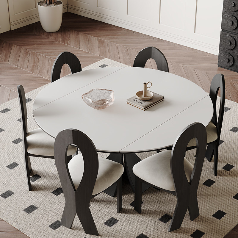 法式复古伸缩岩板餐桌白色家用小户型意式轻奢窈窕圆形实木餐桌