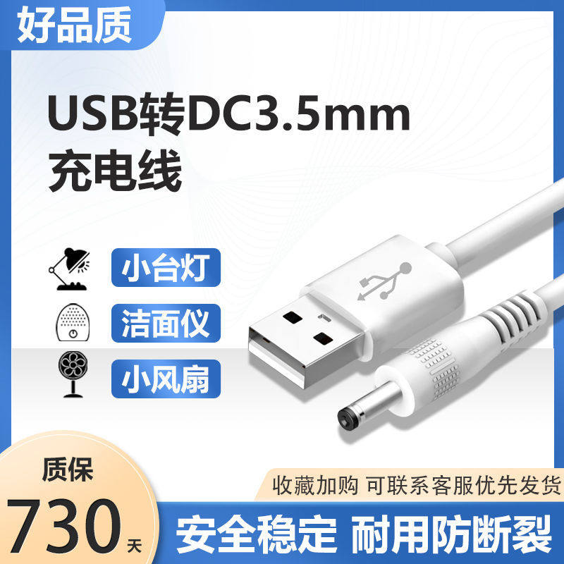 圆头充电线美容仪台灯充电线头灯风扇电源线手电筒3.5圆孔充电线