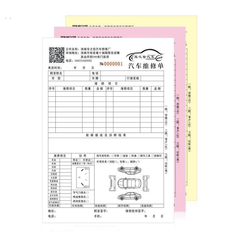 汽车维修单印刷二联销售单三联维修服务单报价服务单凭证