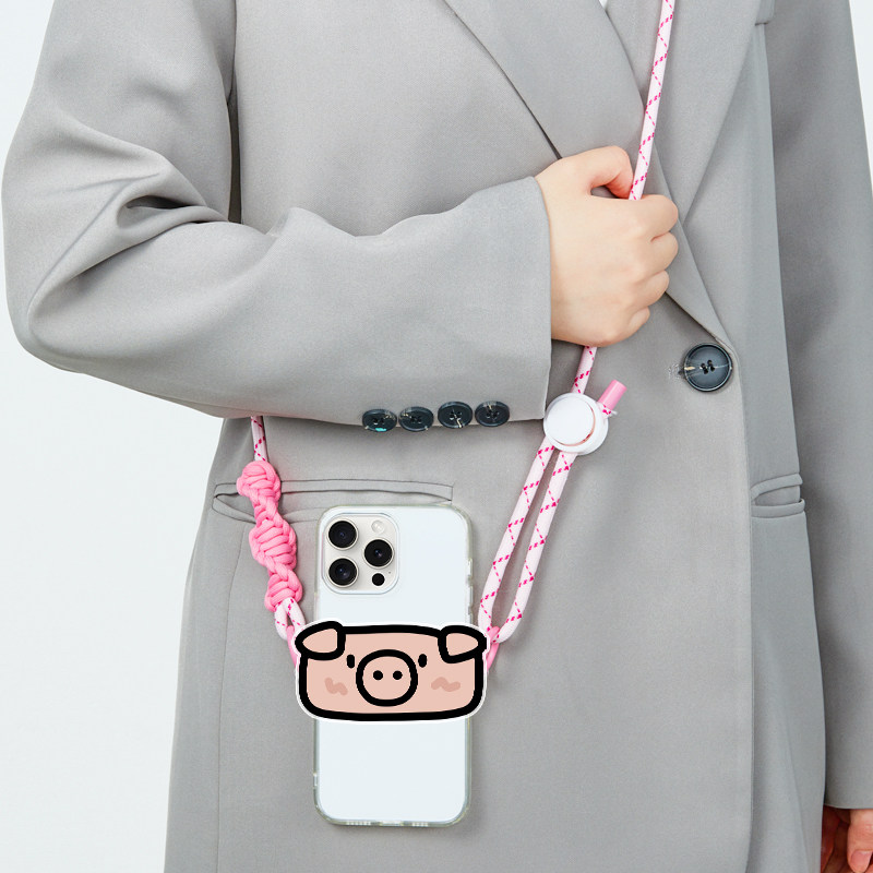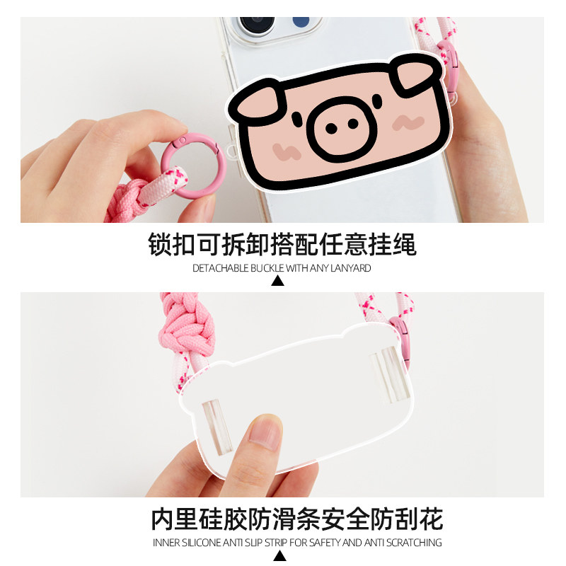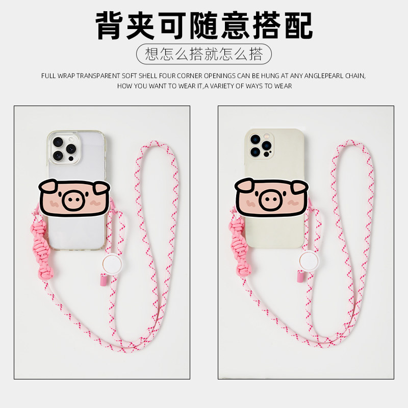 猪头手机背夹挂绳可调节通用斜挎可背带挂绳挂脖新款可爱猪猪防丢长款手机挂绳链女款网红爆款可拆卸挂链