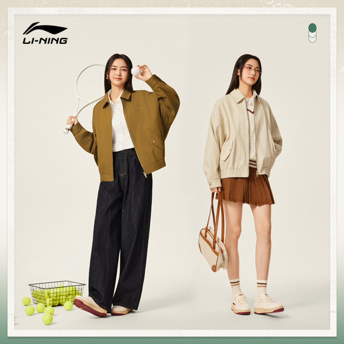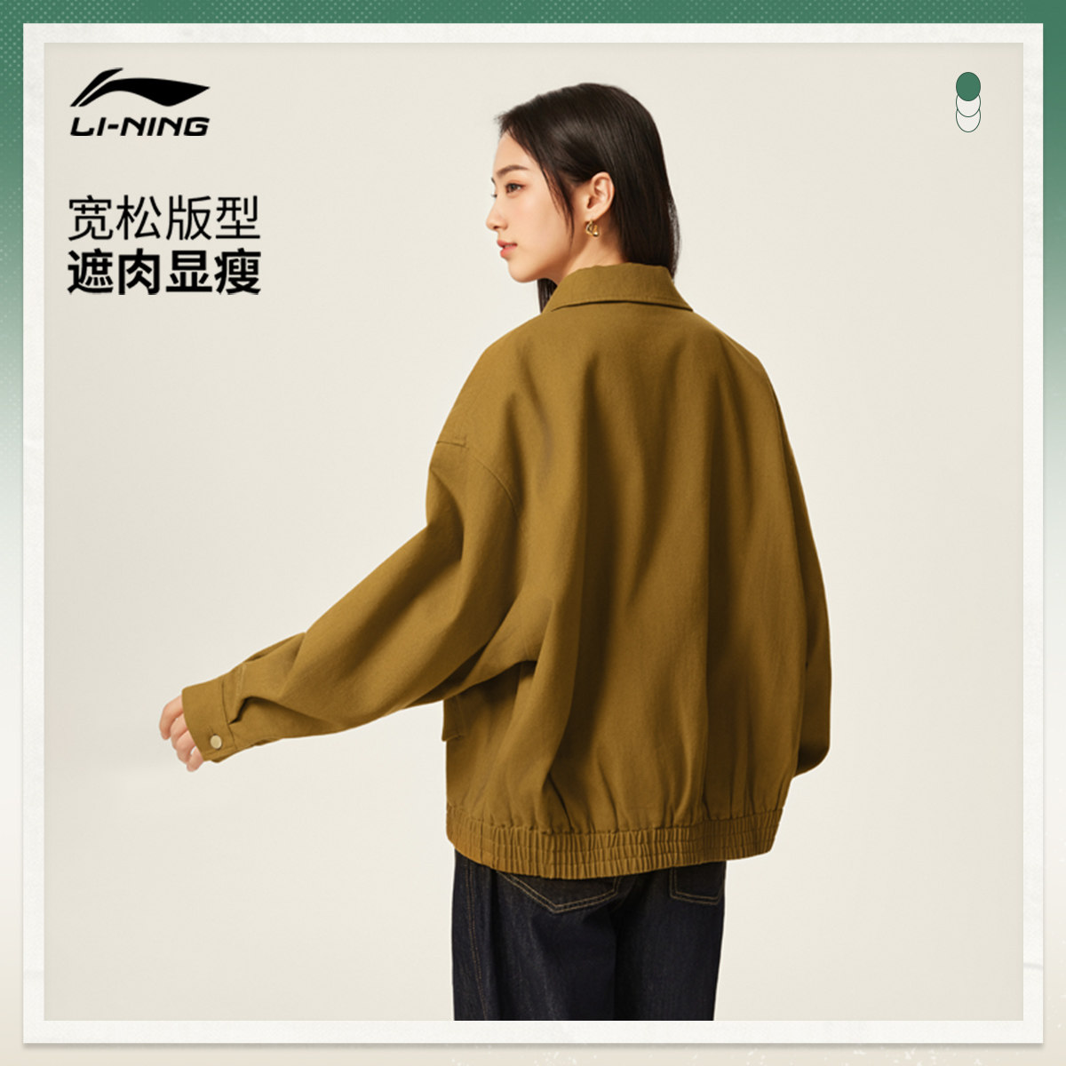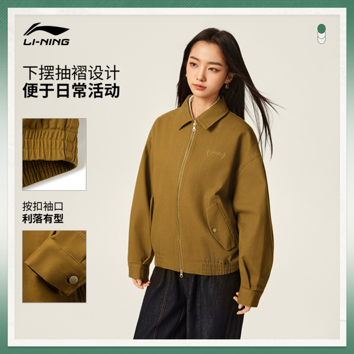李宁外套女冬新款复古巴恩风翻领上衣宽松休闲运动服哈灵顿夹克