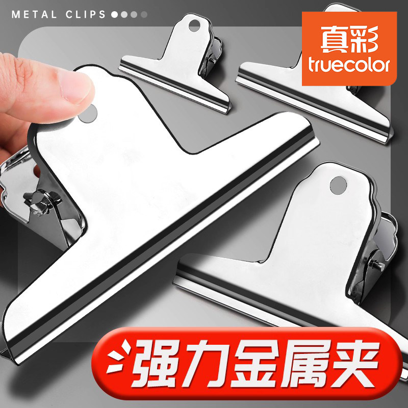 真彩夹子办公文具固定器万用整理夹不锈钢票据夹特大号小书夹子文件家用多功能强力金属蝴蝶票夹铁夹工具用品