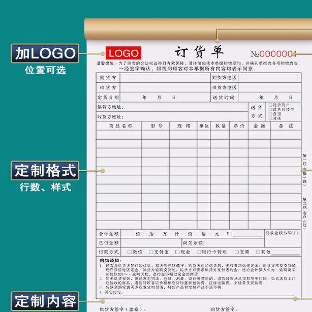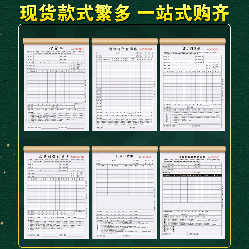 定货单三联订制订货单二联家具销售单门窗订单本石材订购单窗帘墙布开单本瓷砖合同木门收据全屋定制定销货单
