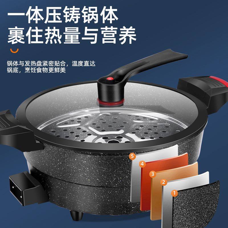 家用多功能电炒锅麦饭石电子微压一体火锅不粘电锅电煮电蒸锅炒菜