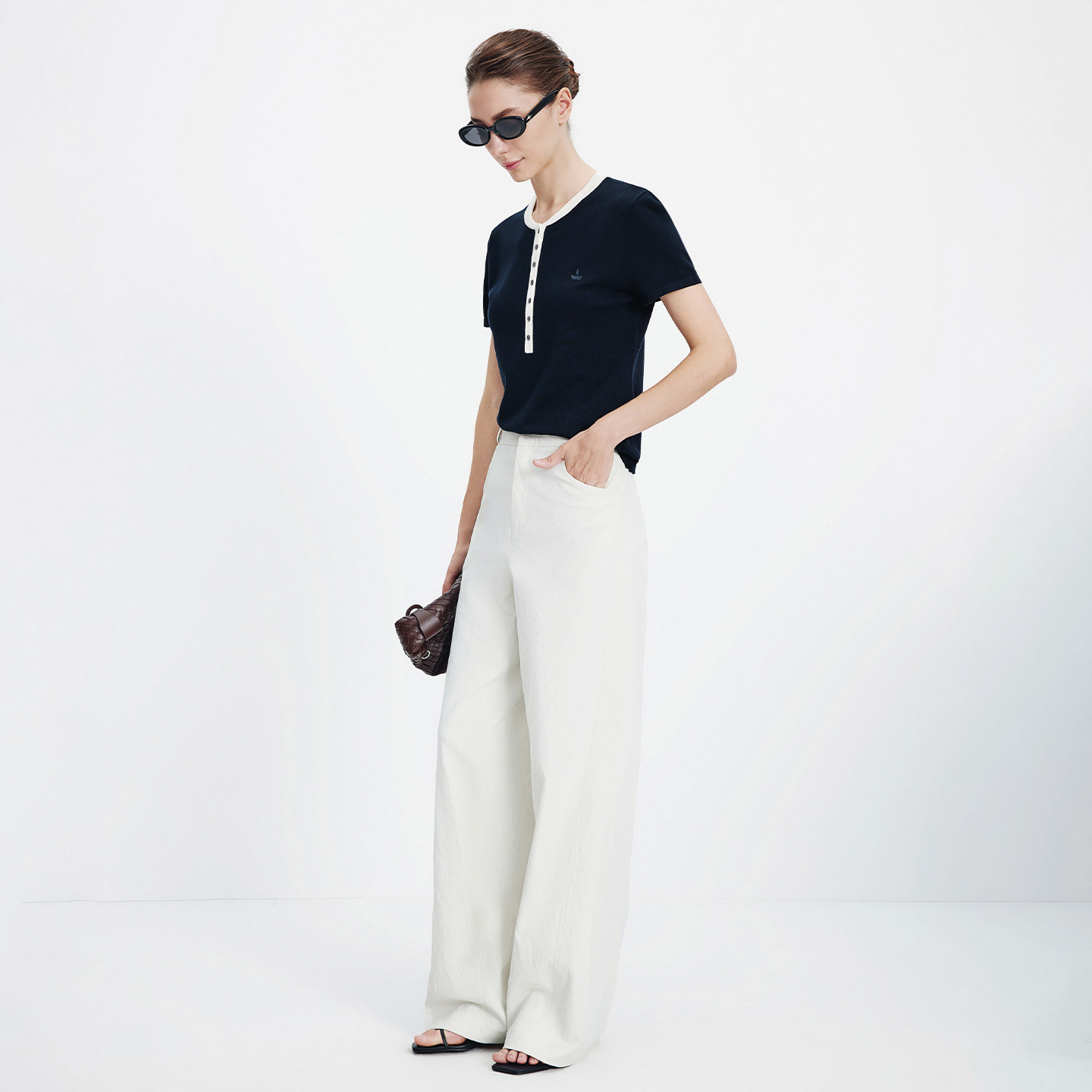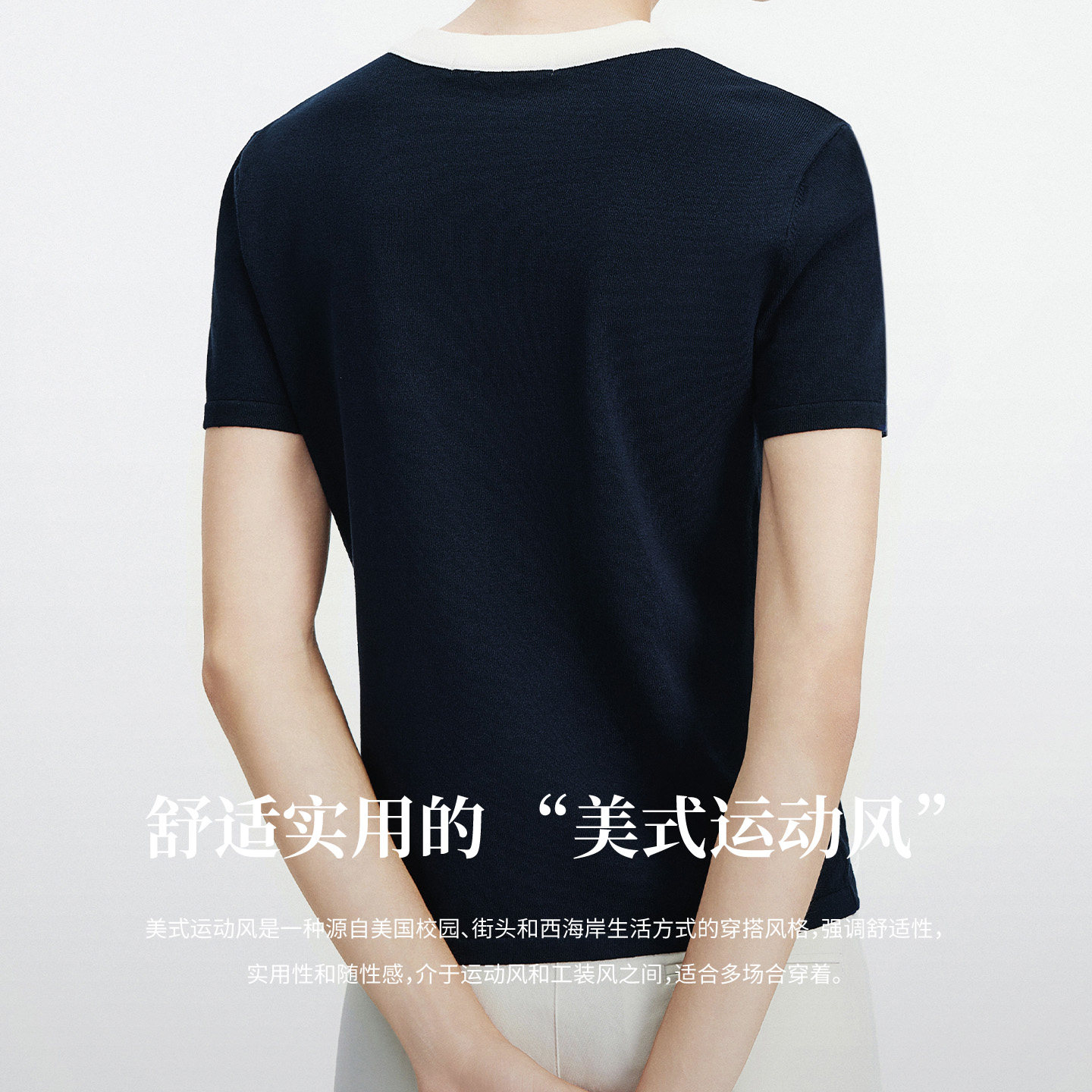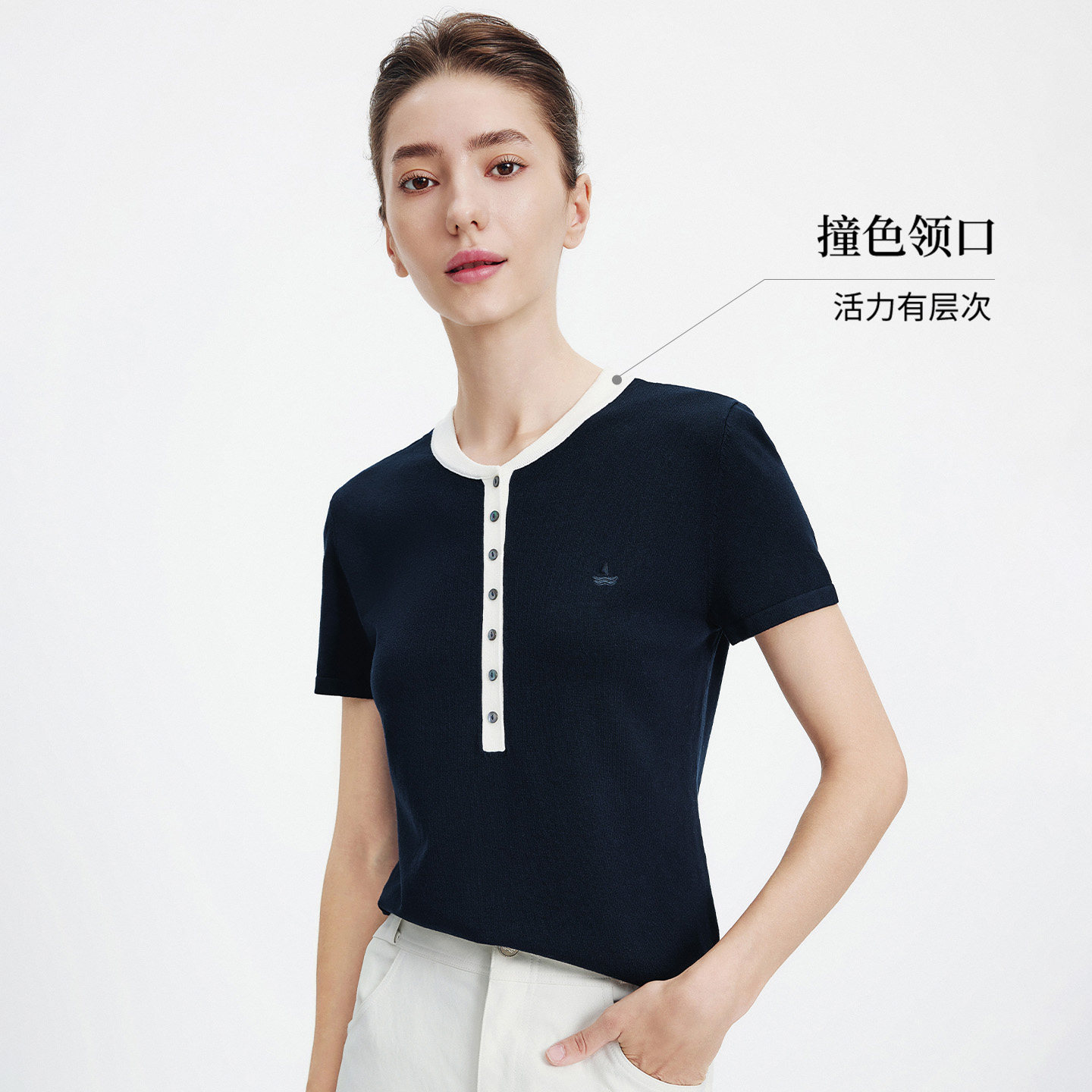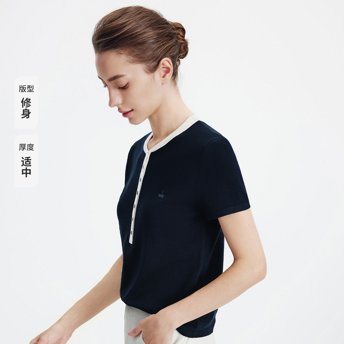 Navigare意大利小帆船弹力针织短袖T恤女2026夏季修身圆领体恤衫